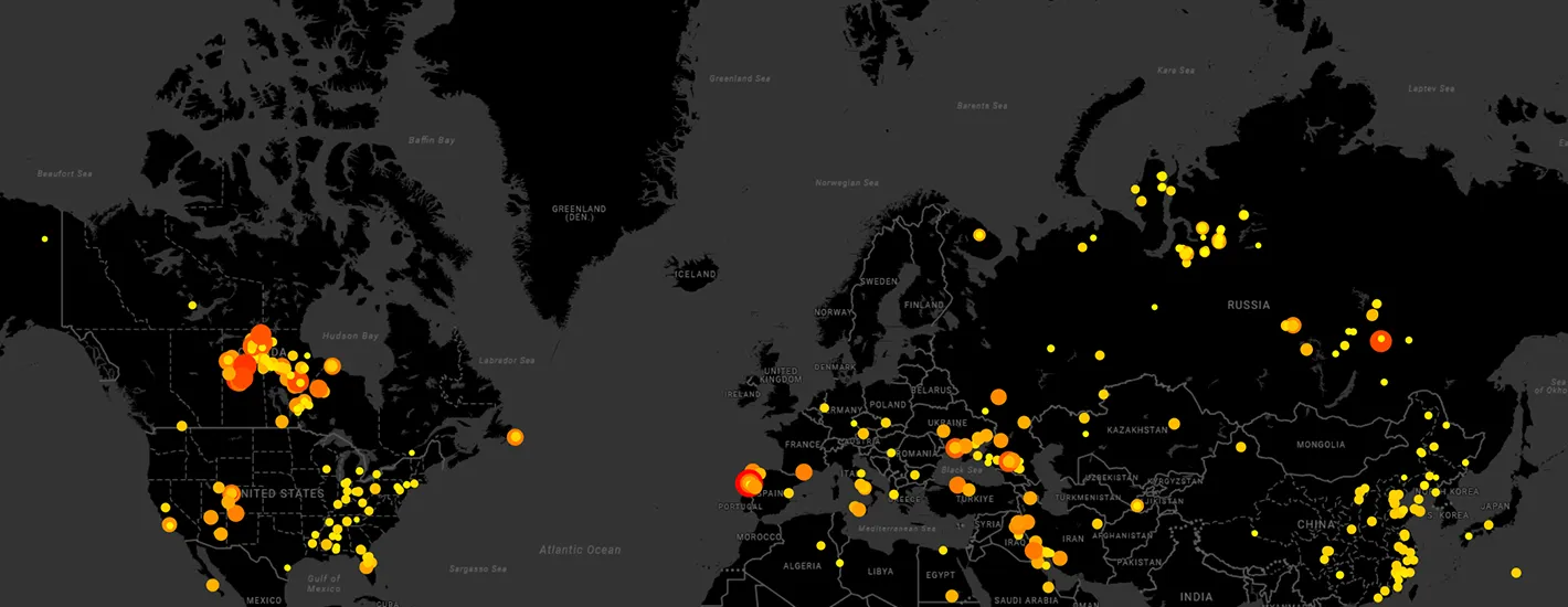Visualisez en direct les foyers d’incendie détectés par satellite dans le monde, puis explorez l’historique des feux de forêt recensés