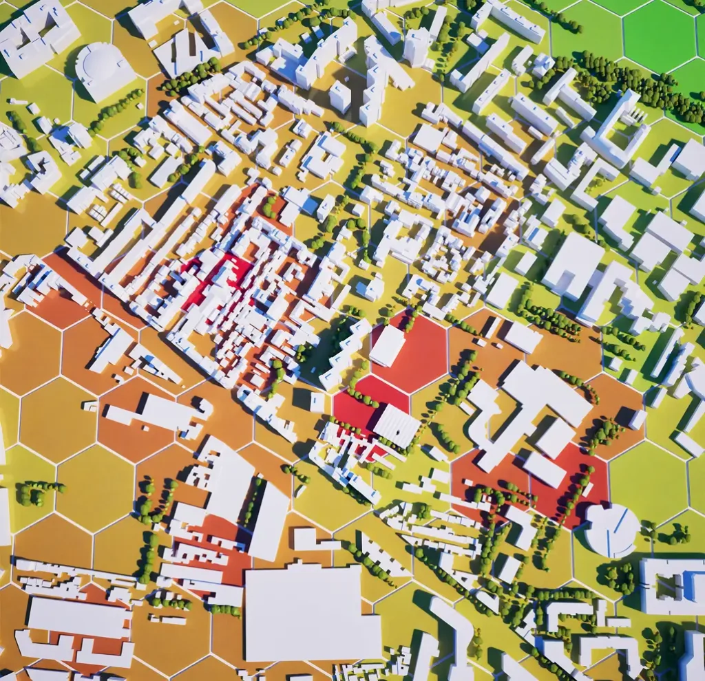 Grâce à cette visualisation, vous pouvez comparer les températures estivales actuelles avec celles projetées à l’horizon 2050, et ainsi mieux comprendre les transformations à venir.
